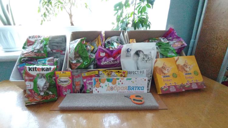 Ребята принесли корма для животных, когтеточку, ножницы. Все это будет передано общественной организации «Рука помощи» в Омутнинске.