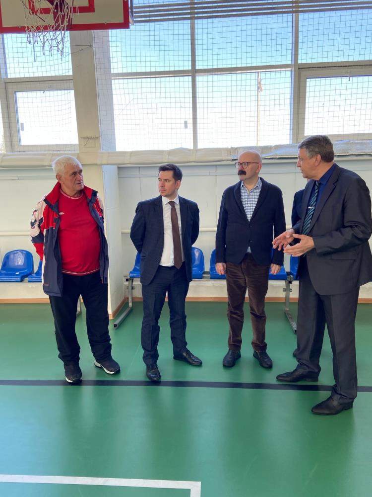 Андрей Альбертович посетил культурно-спортивный центр и школу Олимпийского резерва. Директор ШОР Владимир Еремеев показал новое оборудование - зону приземления к акробатической дорожке и награды своих учеников.