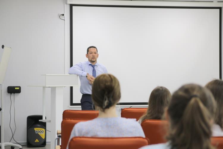 Сергей Александрович выступил перед школьниками: рассказал, какие инновации ожидают завод в будущем, какие специальности нужны производству.