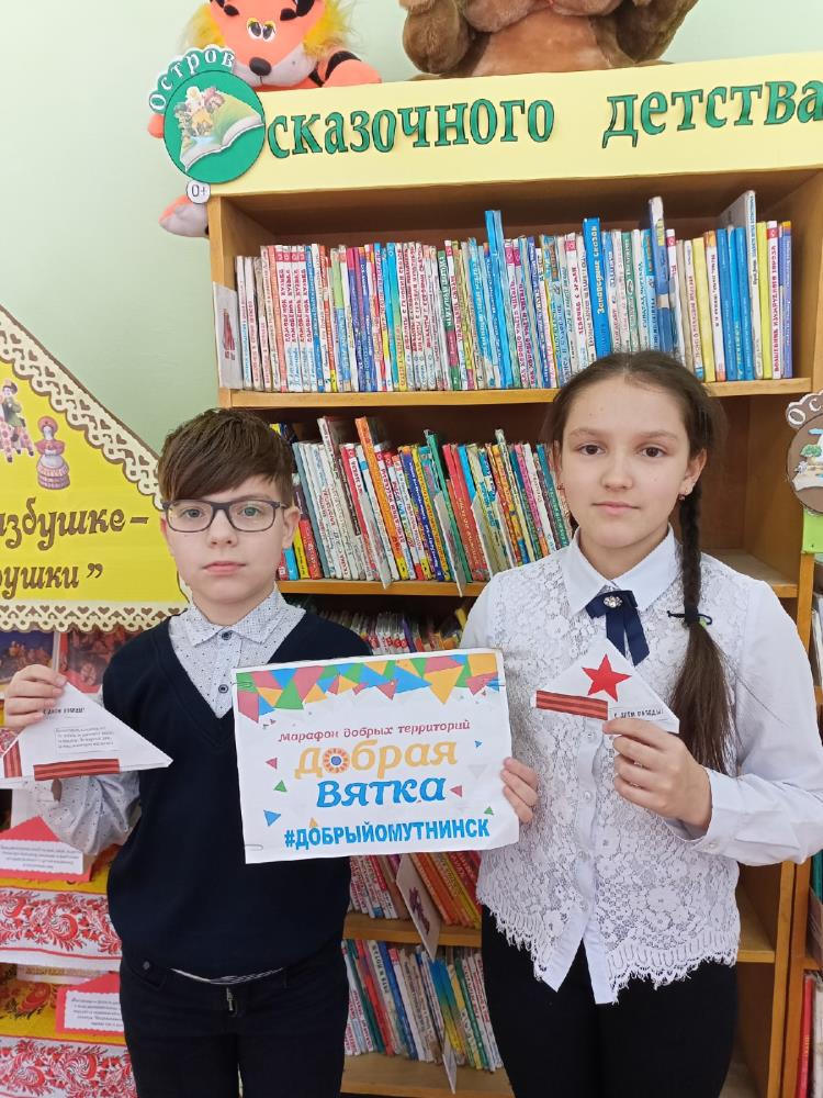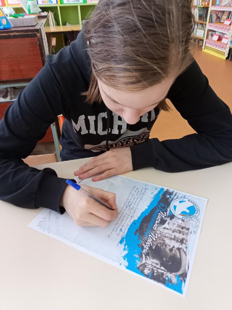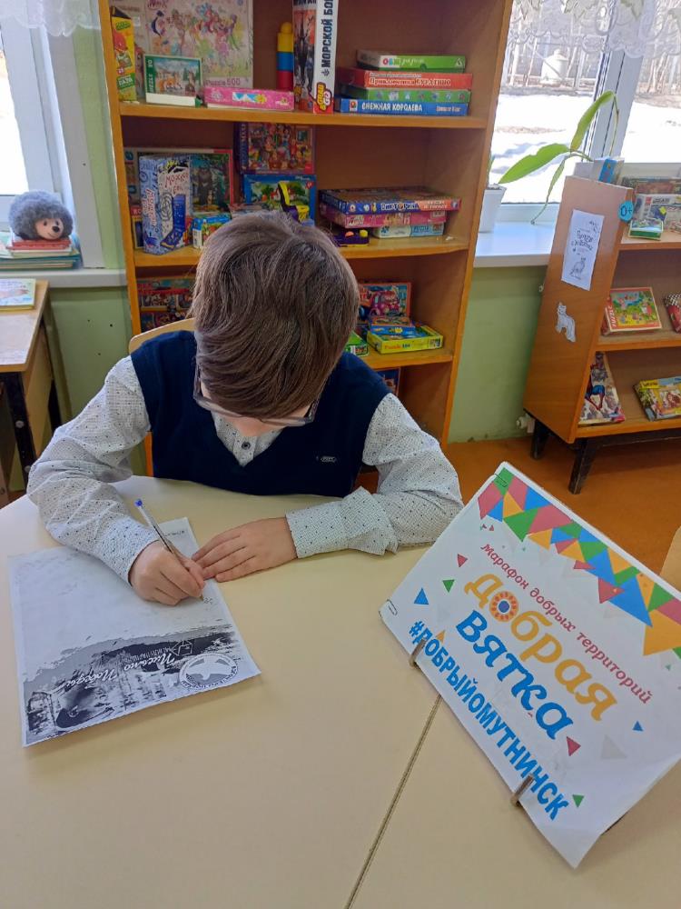 В рамках марафона добрых территорий "Добрая Вятка" детская библиотека «Маяк» провела классный час "Письмо Победы" для школьников.