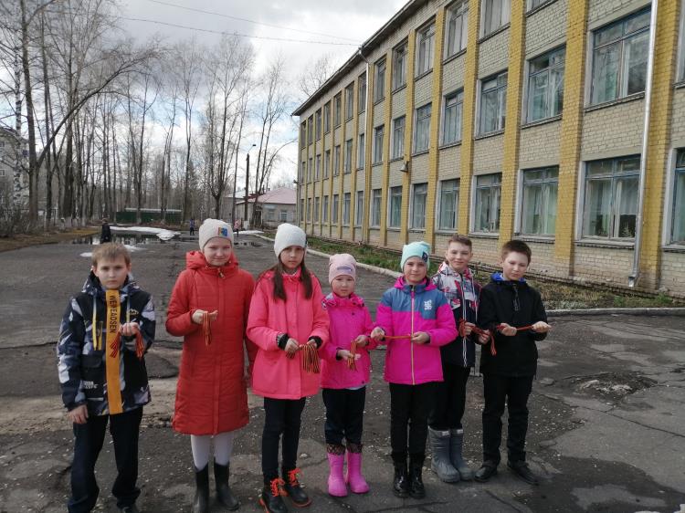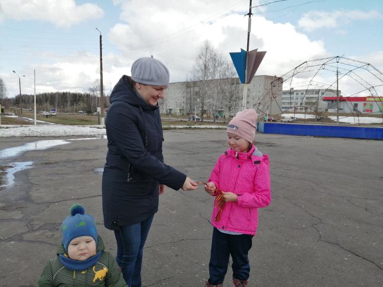 Воспитанники кружка «Я - гражданин России» раздали ленты на улицах поселка.