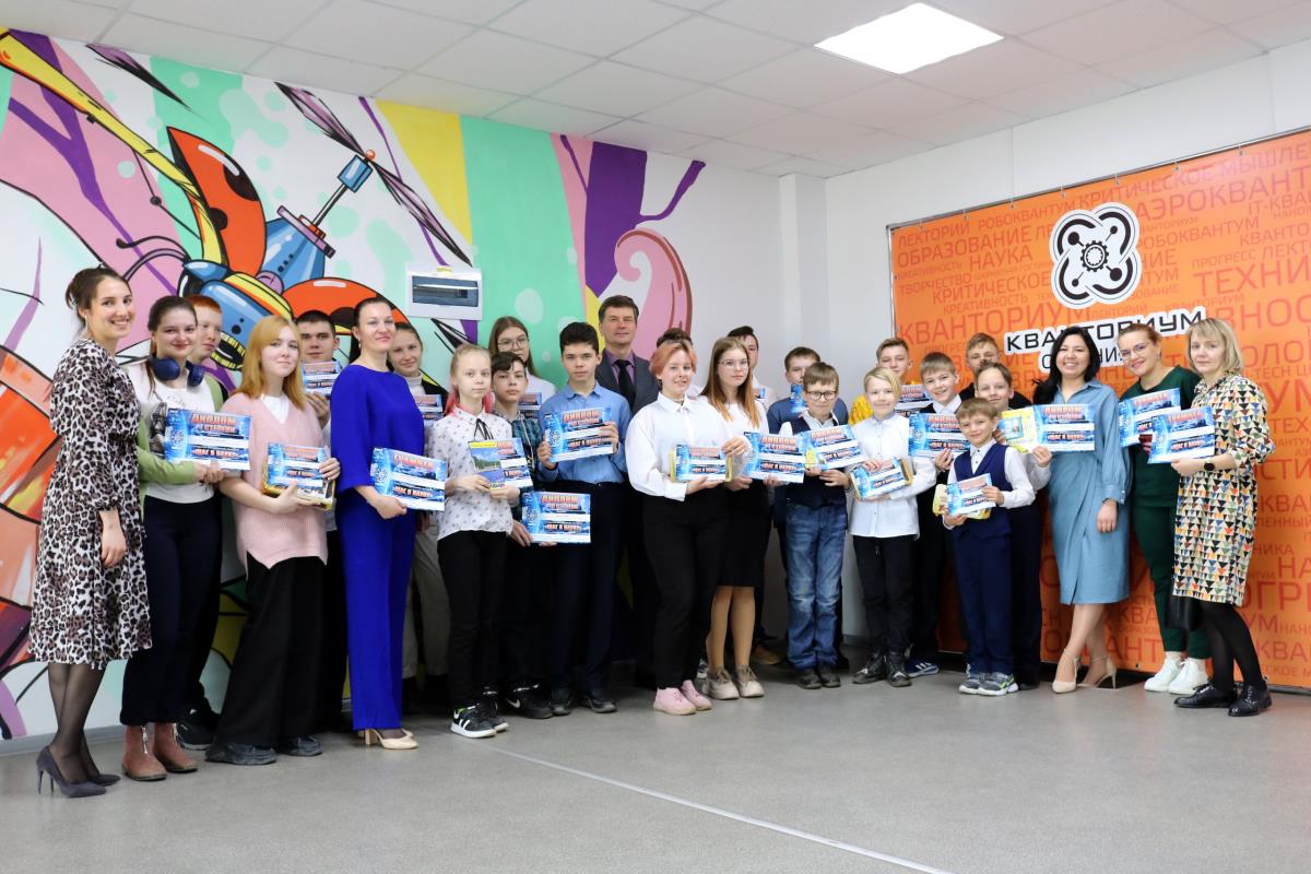 Масштабно прошло чествование победителей «Шага в науку», представлявших Кванториум. Награды ребятам вручил депутат городской Думы, директор по социальным вопросам Омутнинского металлургического завода С.Ю. Курков.