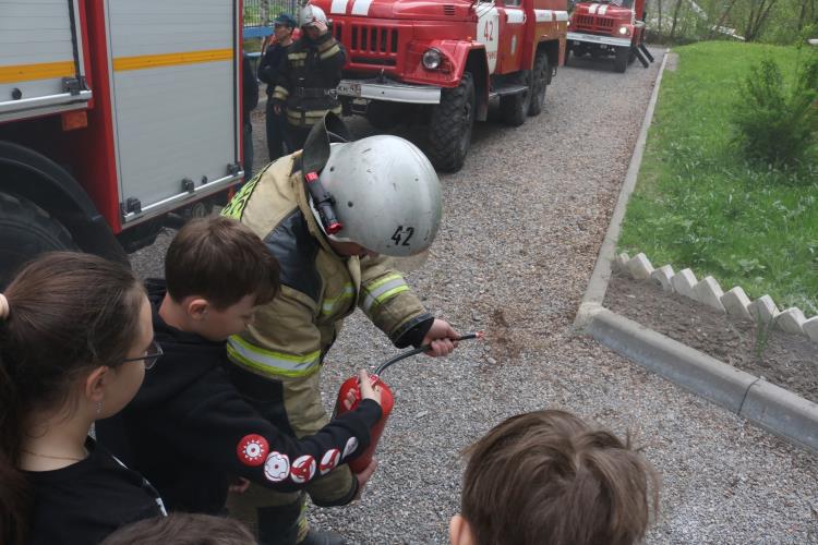 Отряды смогли наблюдать за слаженной работой 11-го пожарно-спасательного отряда 42-й пожарно-спасательной части МЧС России по Кировской области. Ребята учились как правильно действовать в случае возникновения пожара, что предпринимать в первую очередь и как пользоваться огнетушителем.