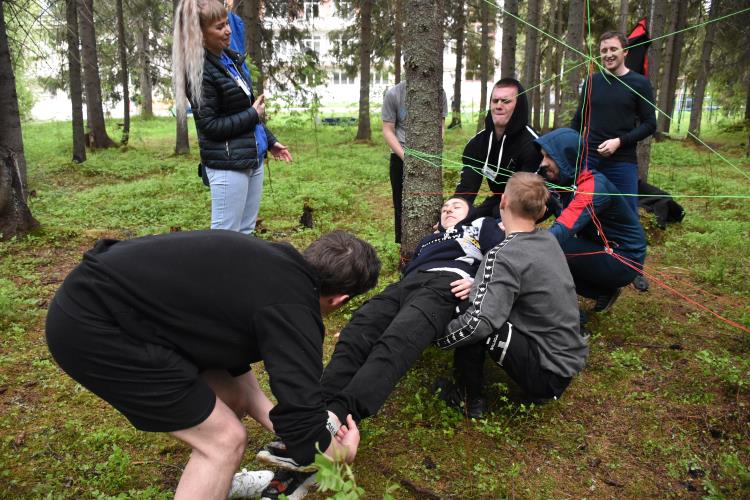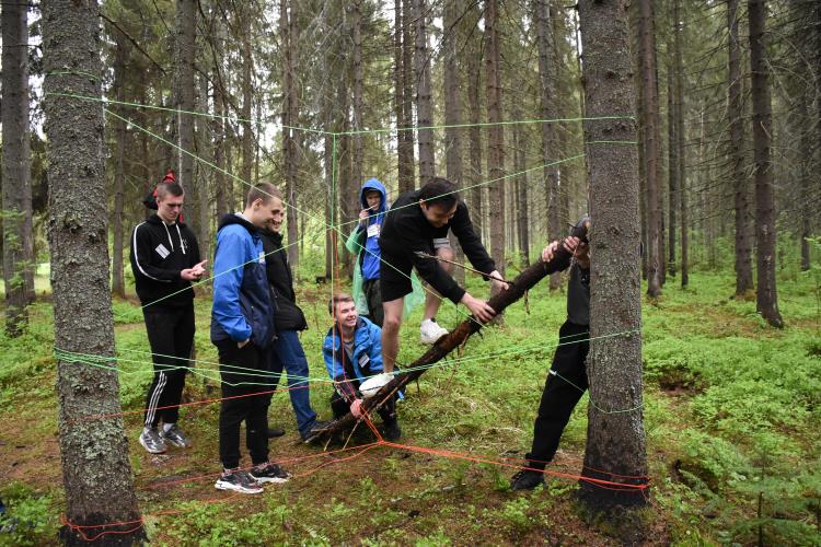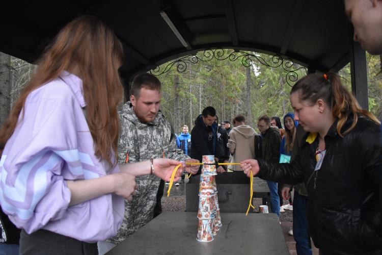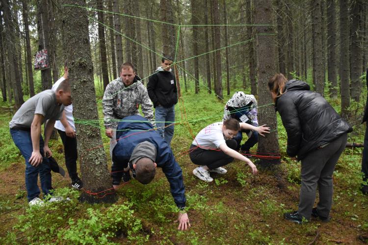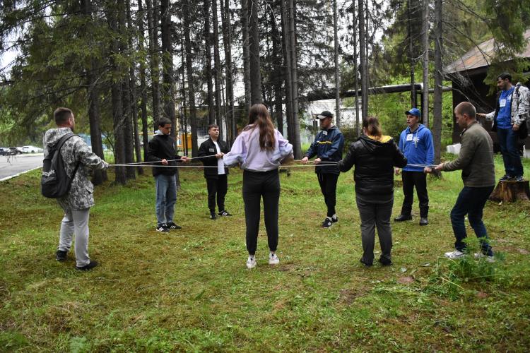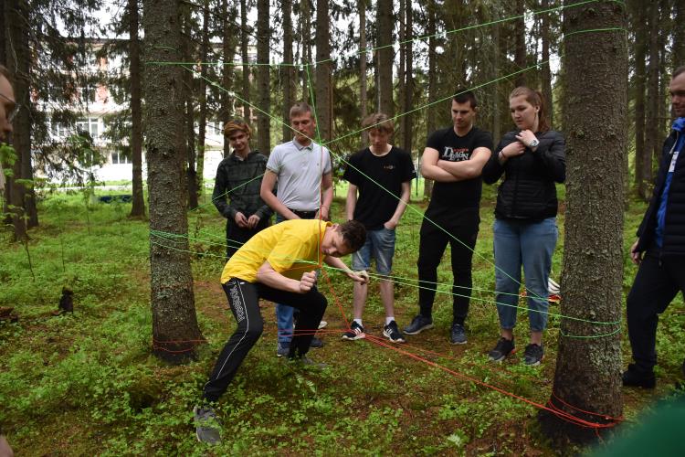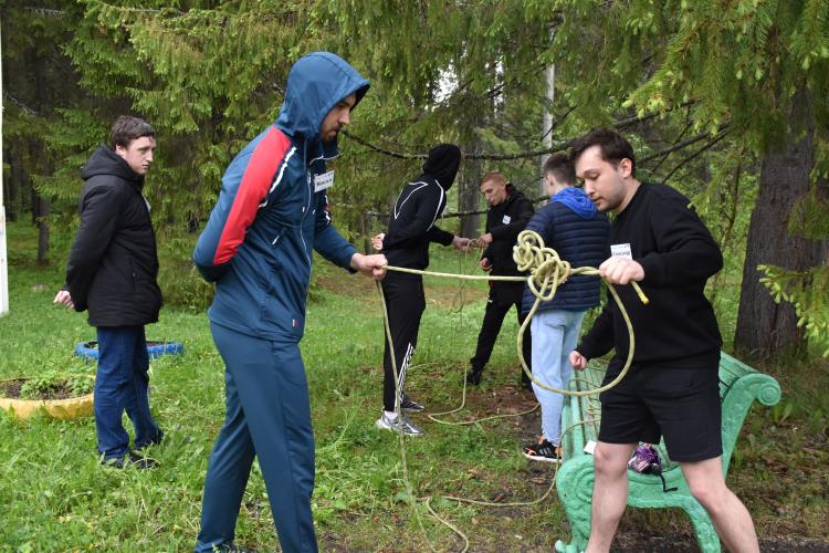 Далее по программе команда Союза молодежи подготовила для участников увлекательный веревочный курс. Состязание представляло собой комплекс упражнений, которые развивают командный дух, чувство доверия, ответственности и уважения к каждому члену коллектива. Упражнения состояли из интересных задач, которые можно выполнить только всей командой с полной отдачей каждого. Несмотря на пасмурную погоду ребята с удовольствием проходили этапы и получили массу впечатлений.