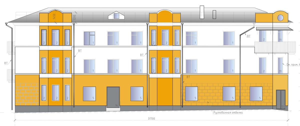 В результате длительных обсуждений выбор был сделан. Первый этаж и эркеры будут выкрашены в теплый желтый цвет, а 2-3 этажи останутся белыми.