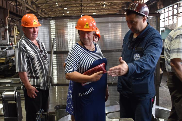 Не менее интересной была экскурсия по цеху машиностроения. Старшие металлурги пообщались с заводчанами, расспросили их о производстве и условиях труда. Остались под хорошим впечатлением.