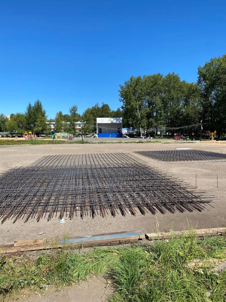 В парке Омутнинска ведутся работы по строительству крытого катка с искусственным льдом. Подрядчик готовит основание ледового поля.