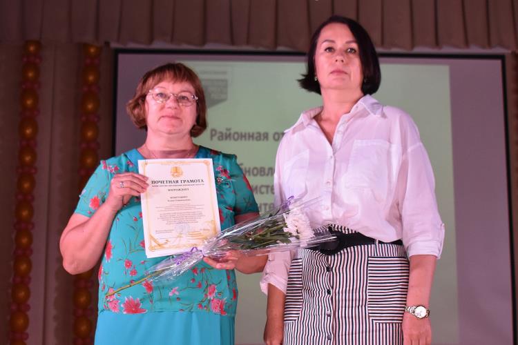 В рамках конференции состоялось награждение педагогов. Почетной грамотой министерства просвещения РФ удостоены Е.В. Уткина, Н.Е. Носкова и Е.Н. Шуплецова. Почетной грамотой министерства образования Кировской области – С.Е. Храмцова, Е.Г. Мокрушина и Т.С. Осколкова. Благодарственными письмами награждены И.Г. Брагина, М.В. Копылова и Г.И. Сидорова. Звание «Почетный наставник в сфере образования Кировской области» присвоили Г.Г. Комаровой. Отметили педагогов, занесенных на Доску почета района - Е.Н. Белоглазову, Н.Д. Гонцову и А.А. Лапину и С.Е. Храмцову. Н.В. Медведева и О.Н. Одегова награждены за подготовку призеров регионального этапа всероссийской олимпиады школьников, Л.В. Дементьева – за подготовку к ГИА выпускницы с максимальным баллом по обществознанию.