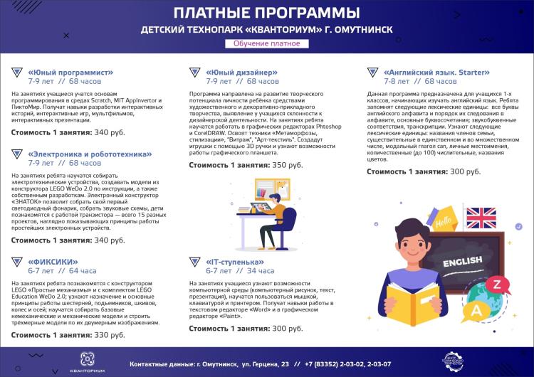 Программы обучения в технопарке Кванториум