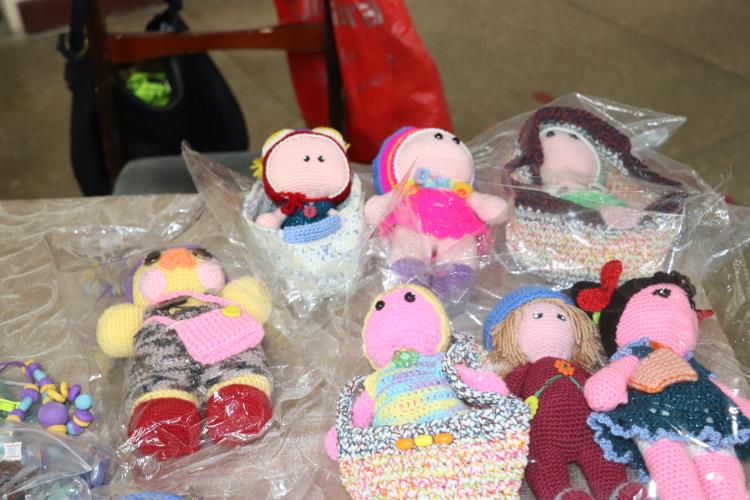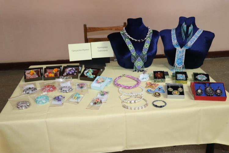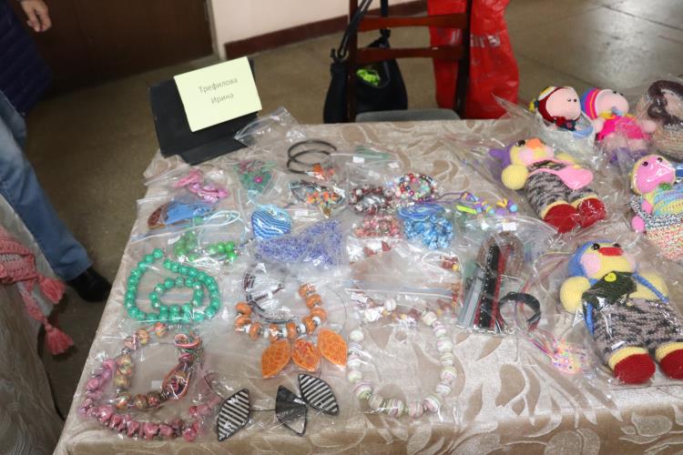 На ярмарке можно было не только полюбоваться, но и купить украшения из камней, браслеты, ожерелья из бисера, серьги, шали. Все изделия ручной работы и существуют в единственном экземпляре. Также рукодельницы представили на суд покупателей вязаных кукол.