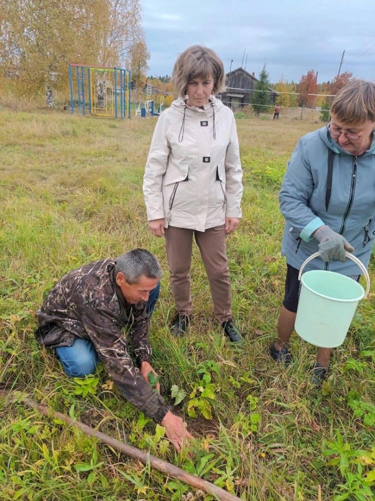 Участники акции высадили 15 саженцев дуба. Молодые деревца шахровчанам предоставила жительница Омутнинска Галина Ельцова. Привёз их в Шахровку Анатолий Урсу.