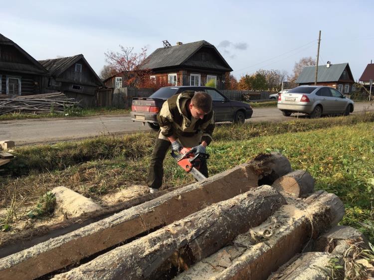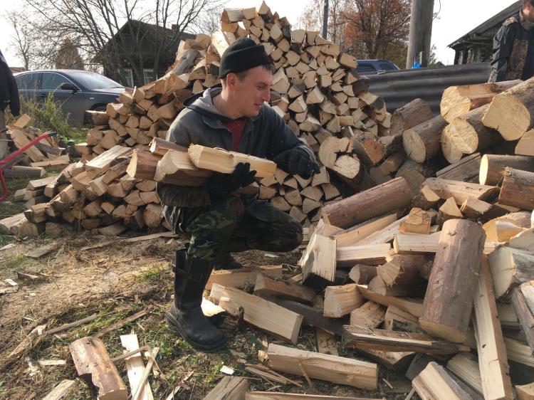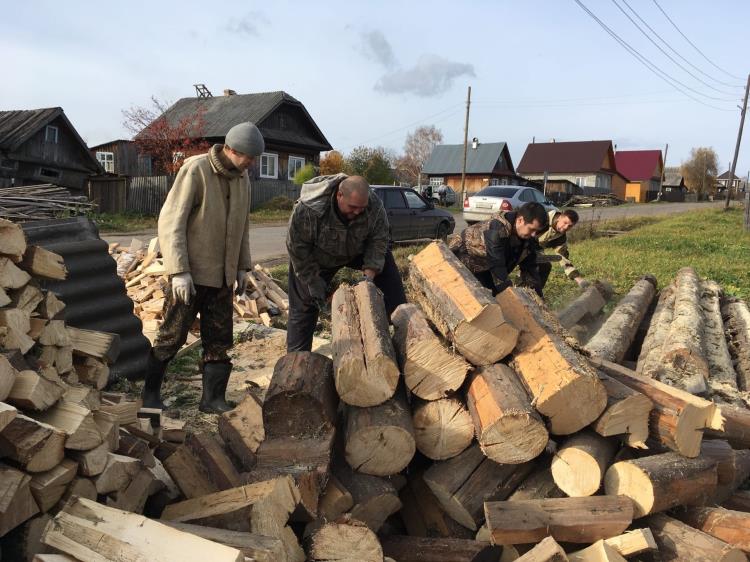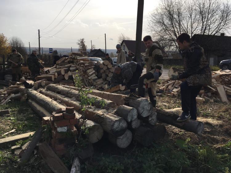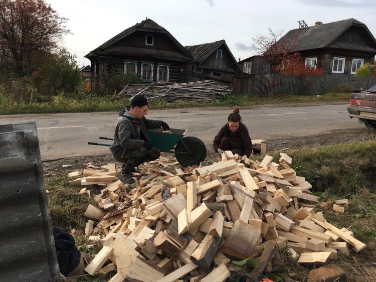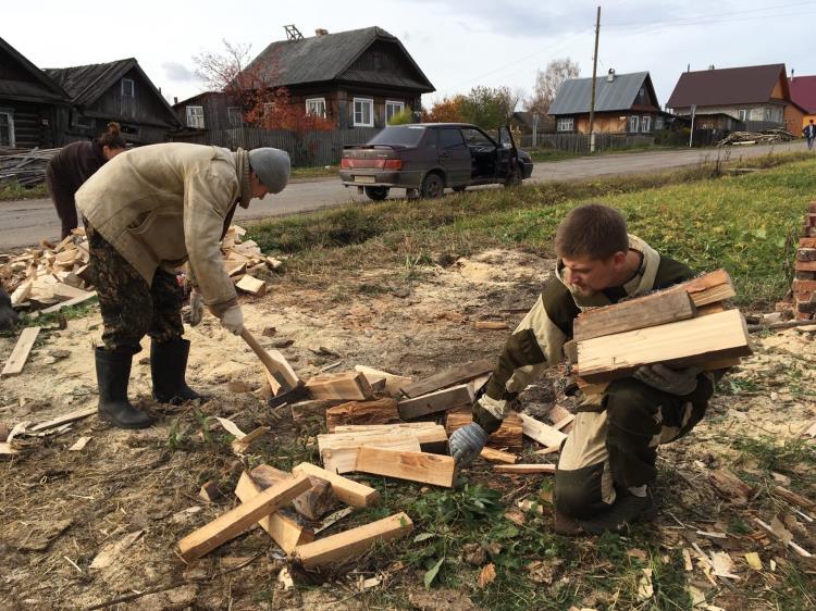 Молодые люди оказали важную помощь - ребята сложили дрова в поленницу.