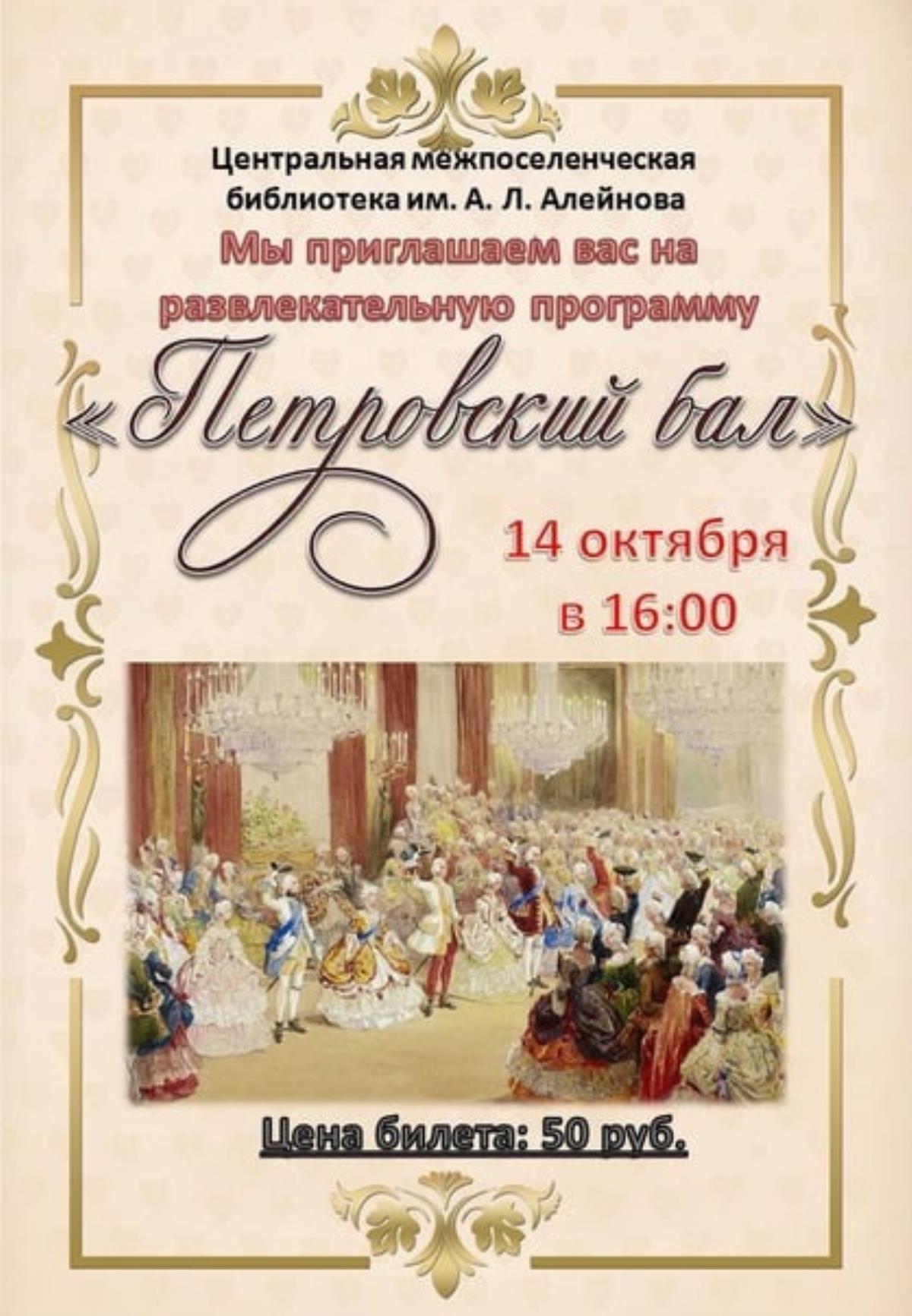 Состоится Петровский бал 14 октября в библиотеке им. А.Л. Алейнова в 16:00.