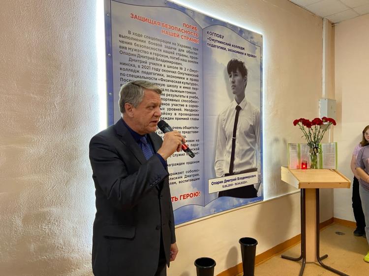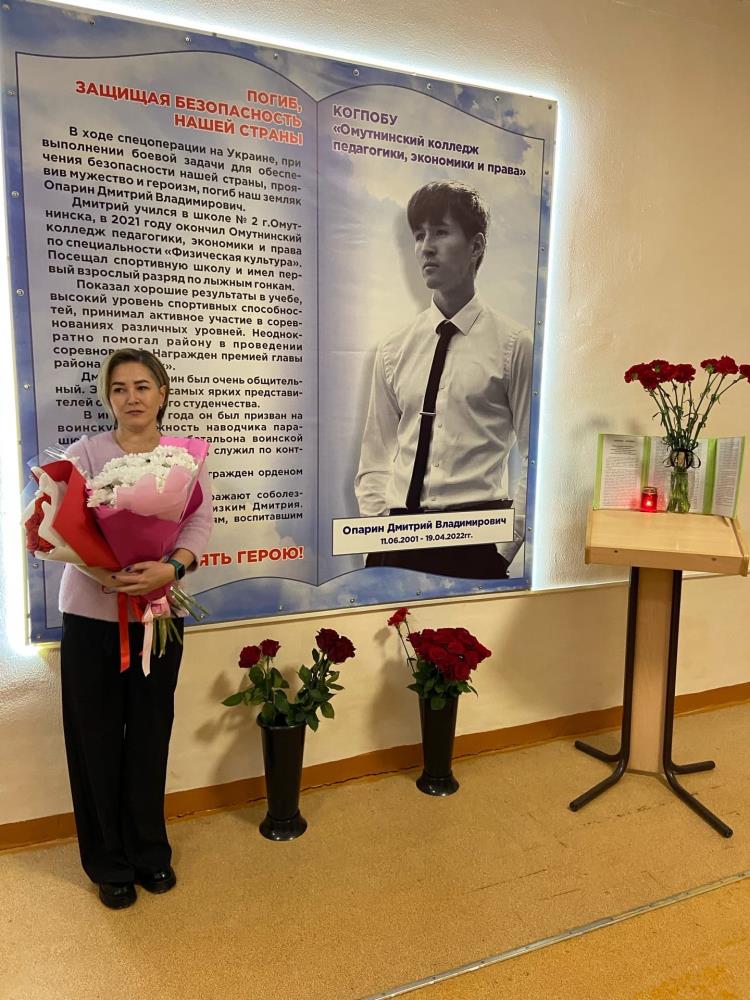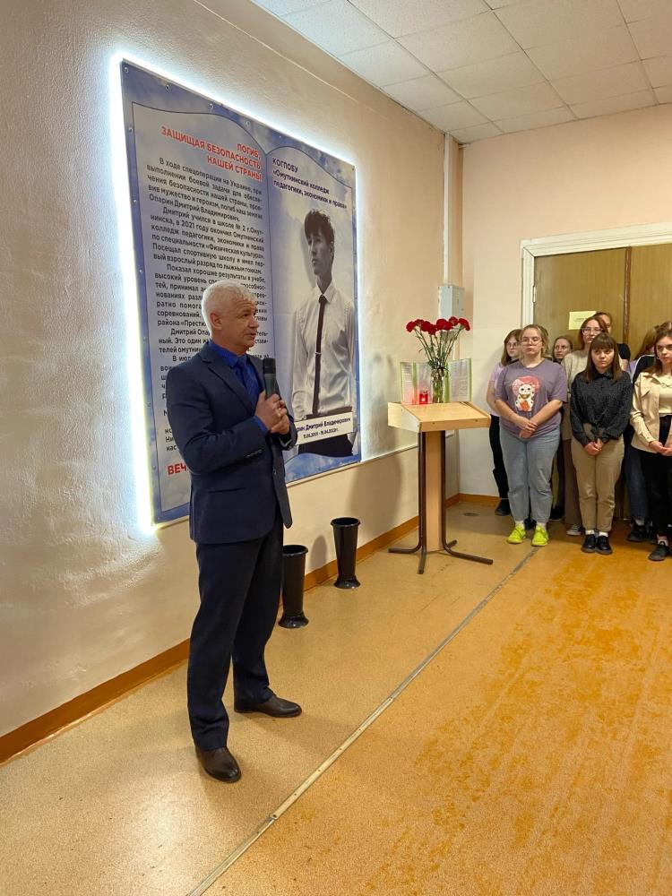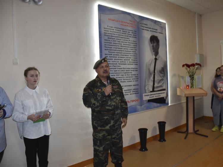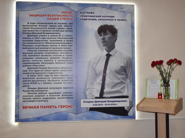 В Омутнинском колледже педагогики, экономики и права состоялся торжественный митинг, посвященный открытию памятного знака Дмитрия Опарина, выпускника образовательного учреждения, погибшего во время спецоперации на Украине.