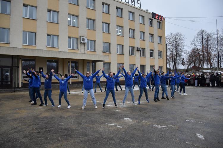 Кульминацией мероприятия стал танец представителей завода с корпоративными флагами. В нем были задействованы работники предприятия и студенты базовой кафедры металлургии Вятского государственного университета. Затем к ним присоединились школьники, студенты и ветераны, чтобы принять участие во флешмобе и отметить событие зажигательными движениями и яркими эмоциями.