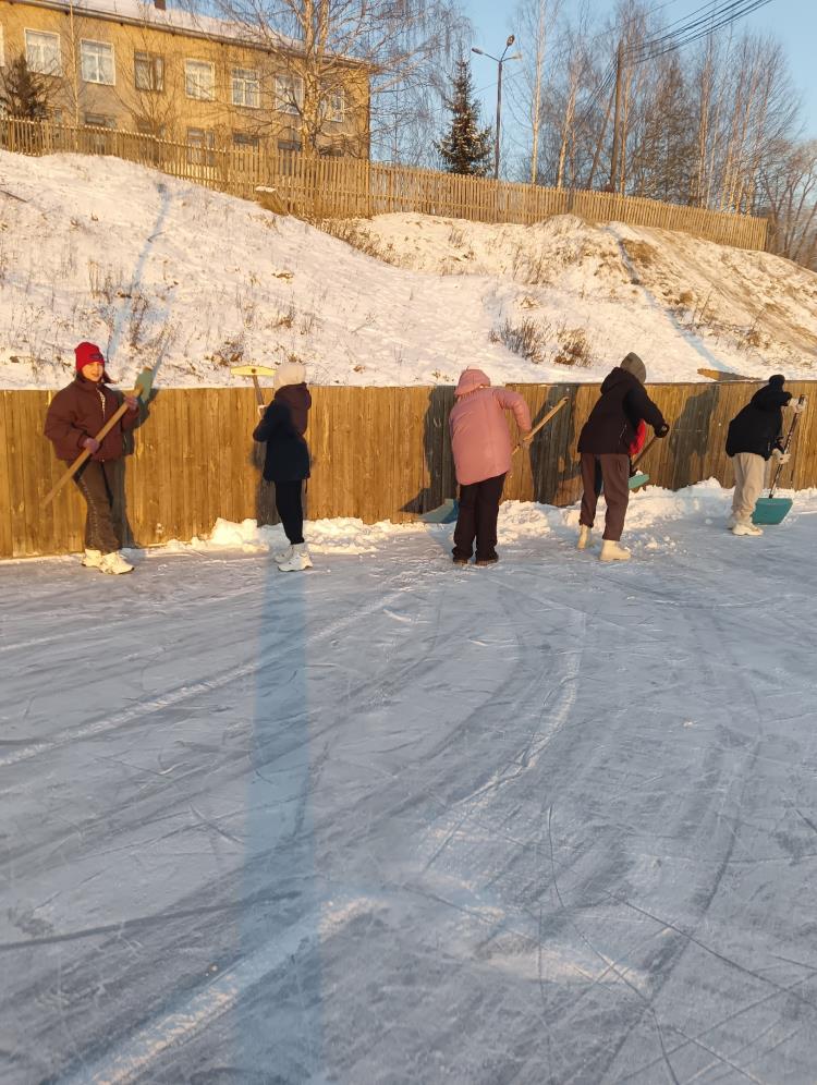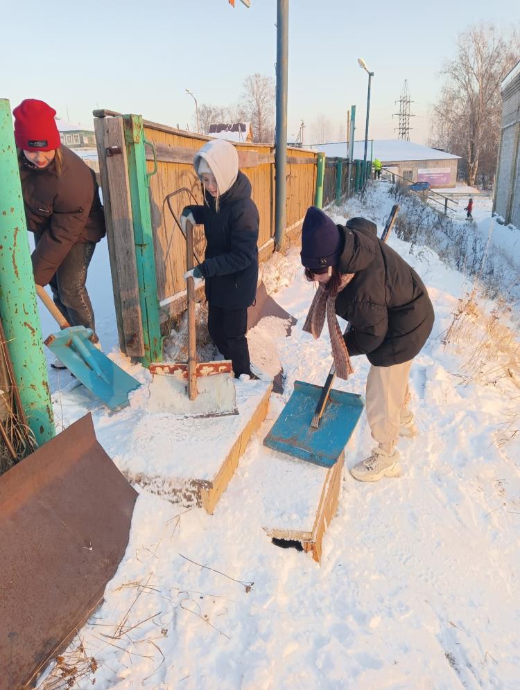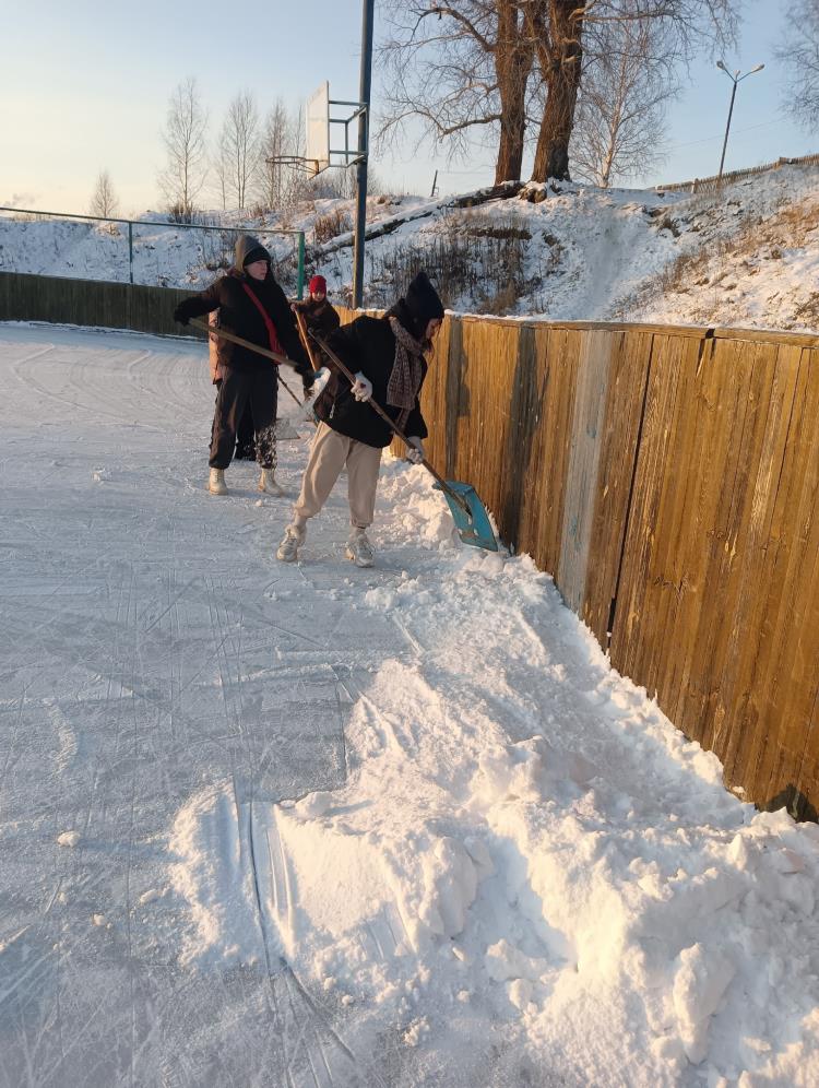 В рамках акции "Твори добро", посвященной Международному Дню добровольца, участники объединения "Стартап" и "Театрик" в Песковке помогли сотрудникам спорткомплекса "Юность" с уборкой снега на хоккейной коробке.