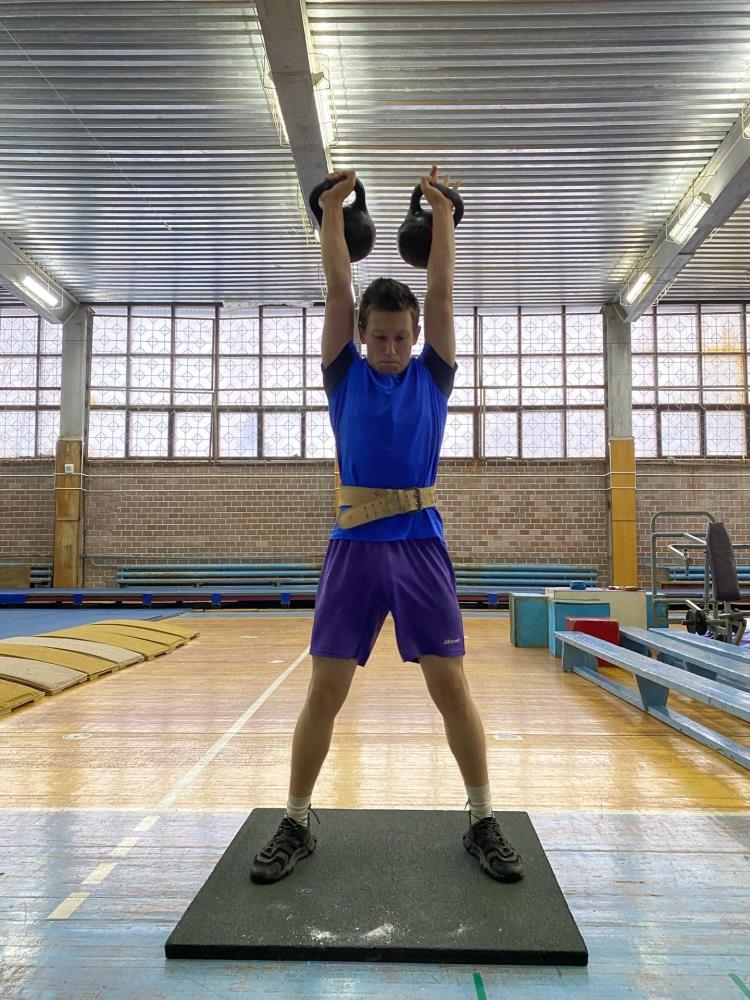 Участники состязались в упражнении «толчок гири по длинному циклу».
