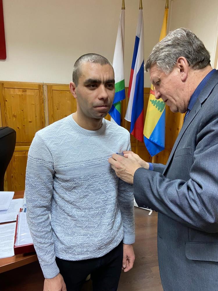 Омутнинцу Денису Шумайлову вручил медаль «За отвагу» глава Омутнинского района Александр Малков.