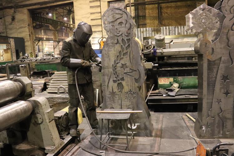 – Вначале программист Евгений Булдаков изготовил эскиз и заготовки из железа на плазменной резке. Особую точность уделили деталям – прорисовали лица, косу Снегурочки, снежинки на одежде. Посох Деда Мороза венчает эмблема предприятия, – рассказала руководитель проекта Оксана Николайченко. – Сборкой конструкции занимались сварщик Владислав Тришин и студент-практикант Роман Пунгин. Электрик Евгений Кладов уделил особое внимание безопасности при монтаже электроэлементов.