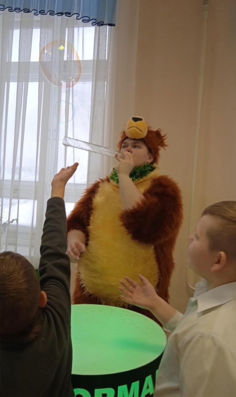 В гостях уже побывали учащиеся 2Б класса государственной школы Омутнинска. Ребята совместно со сказочными героями пели и танцевали, отгадывали загадки и наслаждались шоу мыльных пузырей.