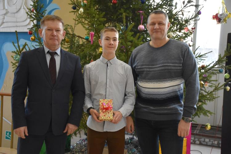 Накануне самого волшебного праздника Александр Николаевич выделил в своем рабочем графике время для поездки в Песковку, чтобы лично поздравить 10-классника Артема Антонова и подарить беспроводные наушники.
