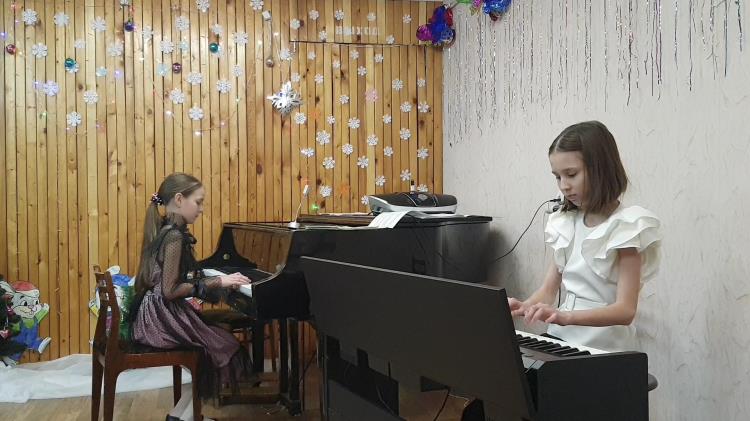 Импровизация на тему популярной новогодней песенки «Маленькой елочке» в исполнении преподавателей О.Н. Бастраковой и Л.В. Целищевой открыла концерт. Прозвучали инструментальные и вокальные произведения в исполнении учащихся школы искусств.