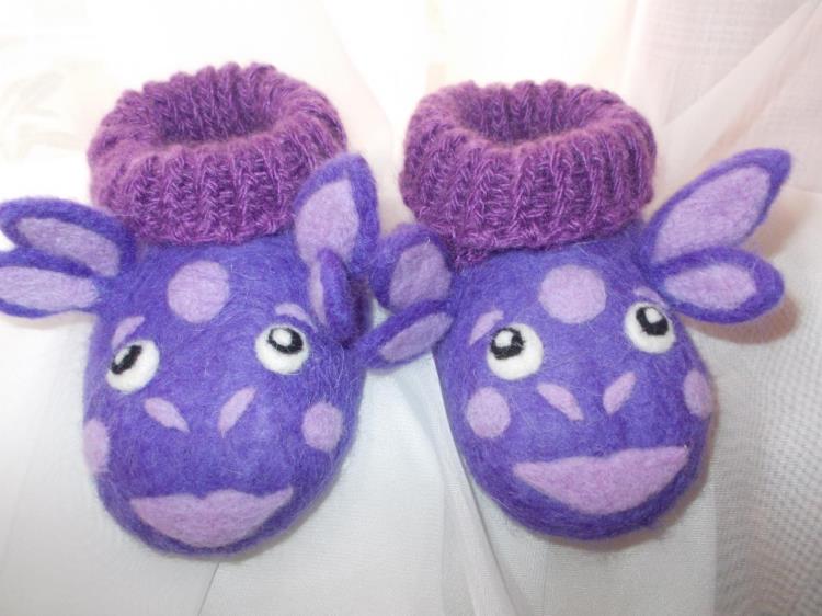 При валянии объем шерсти значительно уменьшается, иногда до 80-ти процентов и усаживается по задуманному автором замыслу. Это момент волшебства, – признается Лариса Валерьевна. – Началось все лет десять назад. Увидела в интернете изделия из овечьей шерсти. Это искусство по-другому еще называют фелтинг. Решила попробовать и поэтапно изучала технику изготовления. Знакомая привезла немного шерсти и иголок из Москвы для пробы, но материалы долго лежали, ожидая своего часа. Вскоре появились на свет первые игрушки и сувенирные валенки, открыв дорогу другим, более совершенным и привлекательным. Например, на одних детских валеночках по желанию клиента «расцвели» маки.