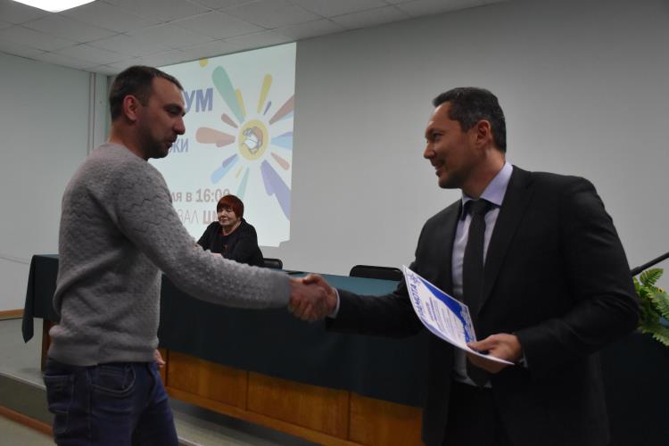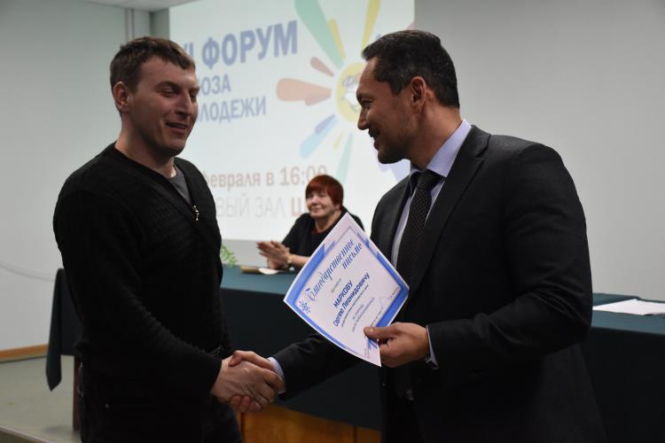 Генеральный директор завода С.А. Волосков вручил награды лидерам, которые возглавляли молодежные первичные организации подразделений на протяжении двух предыдущих лет и председателю Союза молодежи Максиму Прасолову.