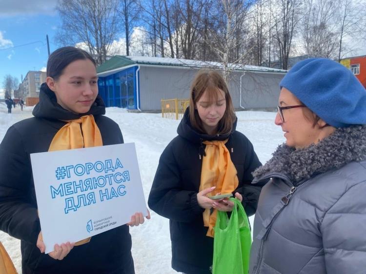 Волонтеры КОГПОБУ "Омутнинский колледж педагогики, экономики и права» - студенты группы специальности «Преподавание в начальных классах» - провели акцию по вовлечению горожан в создание предложений по определению общественных территорий для благоустройства в рамках Всероссийского конкурса лучших проектов комфортной городской среды в малых городах и исторических поселениях.