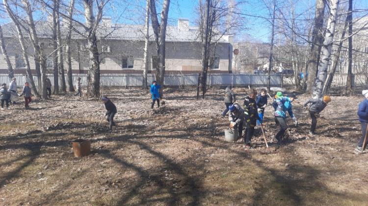 Ученики начальной школы вместе с классными руководителями Э.М. Назмутиновой и Е.В. Обоймовой, вооружившись граблями и мётлами, вышли на уборку, дружно принялись за дело. Ребята убирали мусор, ветки и листву.