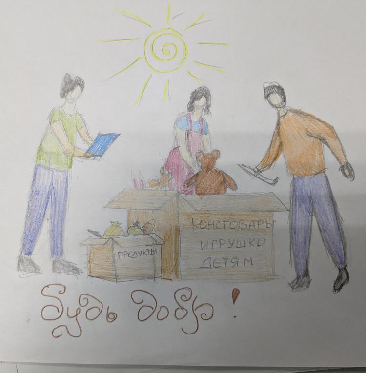 Группа ребят из промдизайнквантума - Лера Шестопалова, Илья Шкляев и Жанна Вертячих - нарисовали открытки на тему «Добровольчество это…»