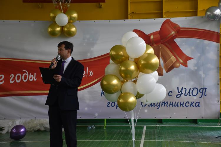 В государственной школе Омутнинска с напутственным словом выступил депутат городской Думы, руководитель службы информационных технологий, автоматизации и связи Омутнинского металлургического завода Сергей Пахомов.