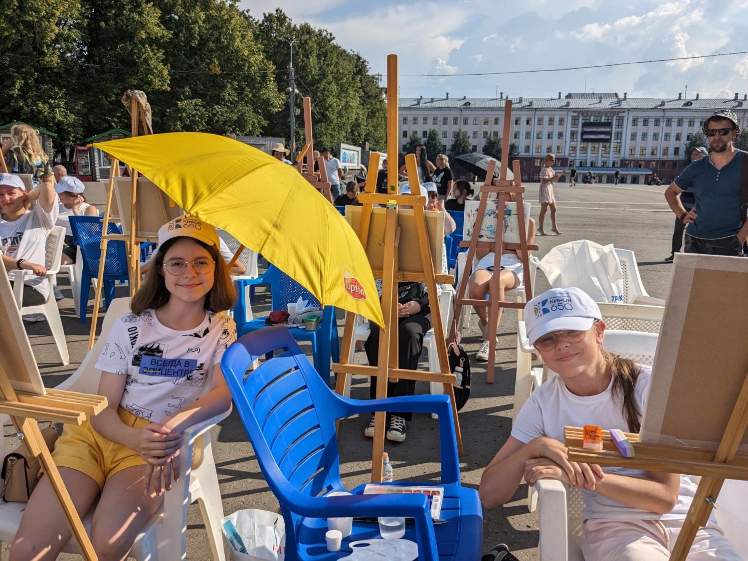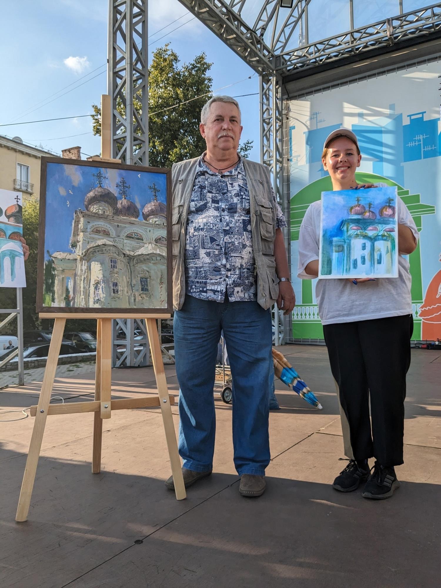 Ребята стали участниками XVIII Всероссийского Васнецовского пленэра, в рамках которого на Театральной площади прошел открытый мастер-класс «Рисуй любимый город!» Участники писали вид на Успенский собор Трифонова монастыря под руководством заслуженного художника РФ Евгения Фетисова.