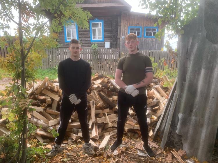 На помощь по уборке снега пришла команда волонтеров Омутнинского потитехнического техникума.