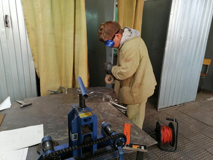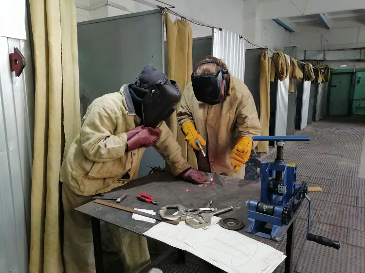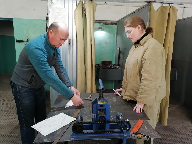 Третьекурсники Никита Дзюба и Алексей Шмаков выполнили раскрой основы композиции из фанеры, а их одногруппники Арсений Копысов, Артем Рябов, Данил Савельев и Виктория Ситчихина подготовили детали из металлических листов: объемные звезды, фигуры птиц.
