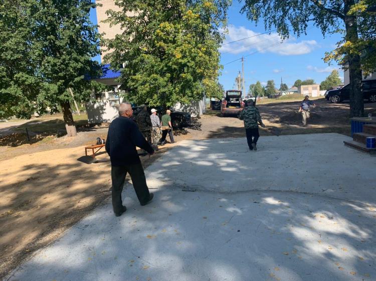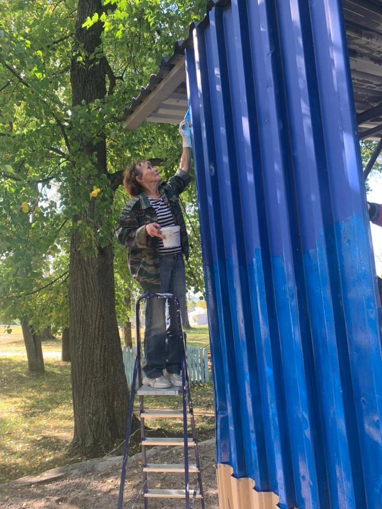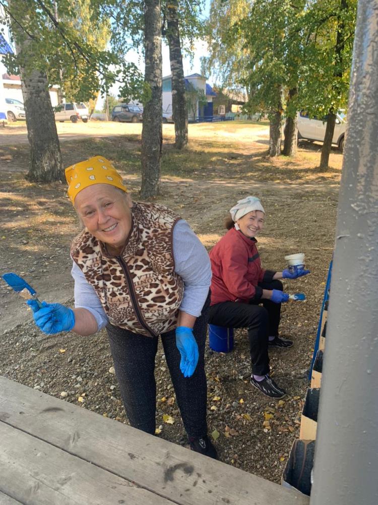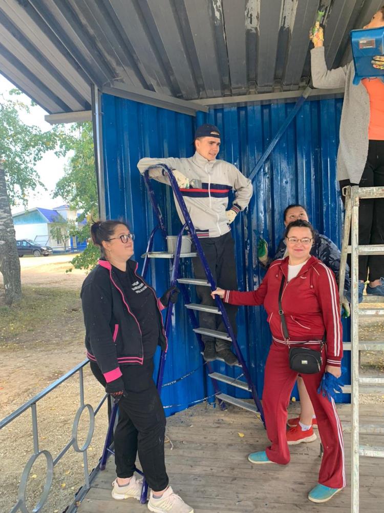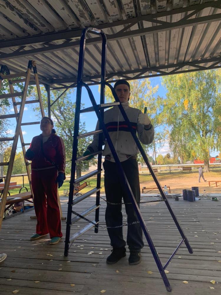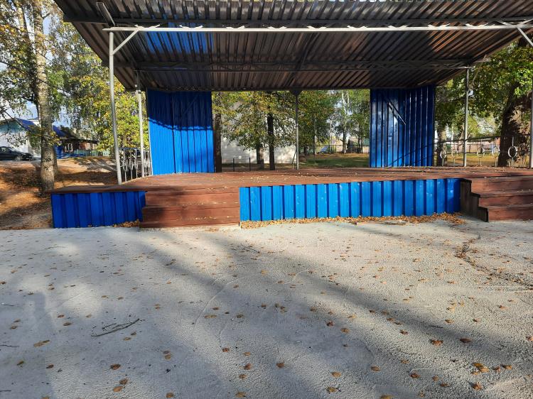 Волонтеры из числа местных жителей выполнили часть работ: удалили старую краску металлоконструкции сцены и выкрасили ее, обработали полы пропиткой и разровняли гравий возле сцены, а также провели уборку прилегающей территории. Активное участие приняли и предприниматели, оказавшие помощь техникой и материалами.