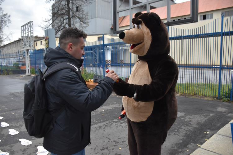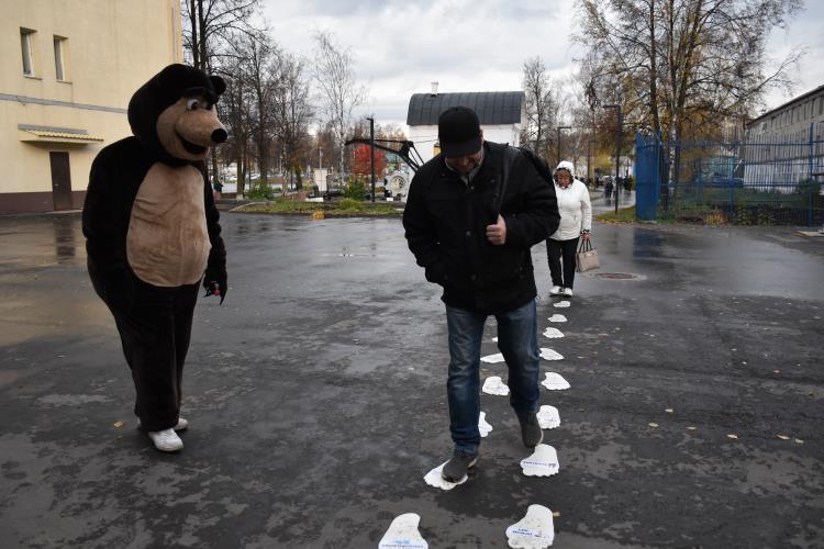 17 октября металлургов, идущих на утреннюю смену, встречал медведь, предлагающий пройти «Тропу здоровья» по следам с правильными привычками. Каждый получил в подарок славившийся целебным на Руси напиток - квас. А также желающие могли принять участие в акции «Белка», необходимо было попасть дротиком в недуг алкоголя — белую горячку, за что «Белка» дарила грецкие орехи. Улыбающиеся заводчане с удовольствием принимали участие в уже полюбившихся утренних акциях.
