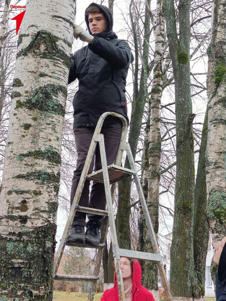 Студенты Омутнинского колледжа педагогики, экономики и права под руководством педагогов закрепили на практике технологию безопасного размещения на деревьях скворечников, собранных ранее из подготовленных комплектов.