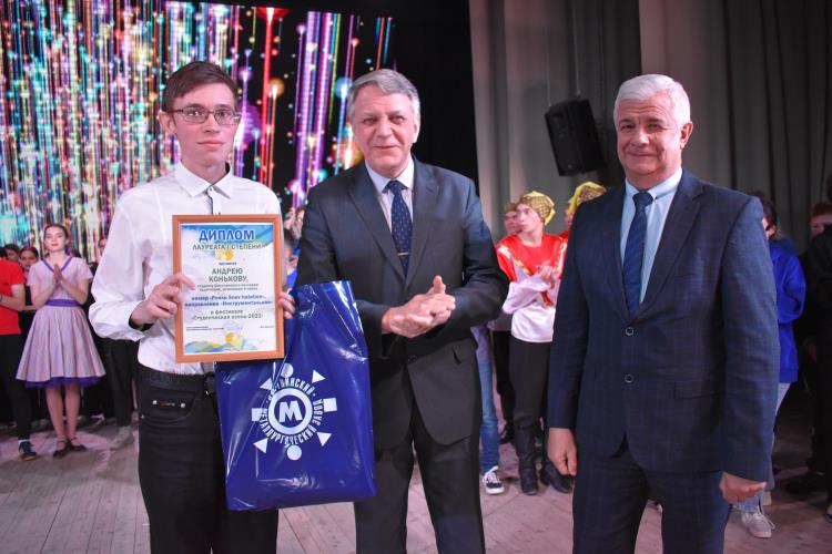 Гран-при фестиваля «Студенческая осень-2023» и двести тысяч рублей на поездку в Москву на ВДНХ, выделенные генеральным директором АО «ОМЗ» С.А. Волосковым, выиграла команда колледжа педагогики, экономики и права. Награду вручил депутат Омутнинской городской Думы, директор по социальным вопросам градообразующего предприятия Сергей Курков.