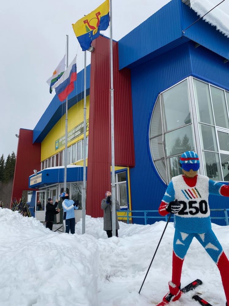 Участников соревнований приветствовал глава Омутнинского района Александр Малков. Под гимн страны подняли флаги победители первенства Кировской области по лыжным гонкам и члены сборной команды региона Полина Леванова, Данил Порубов, Елизавета Новоселова.
