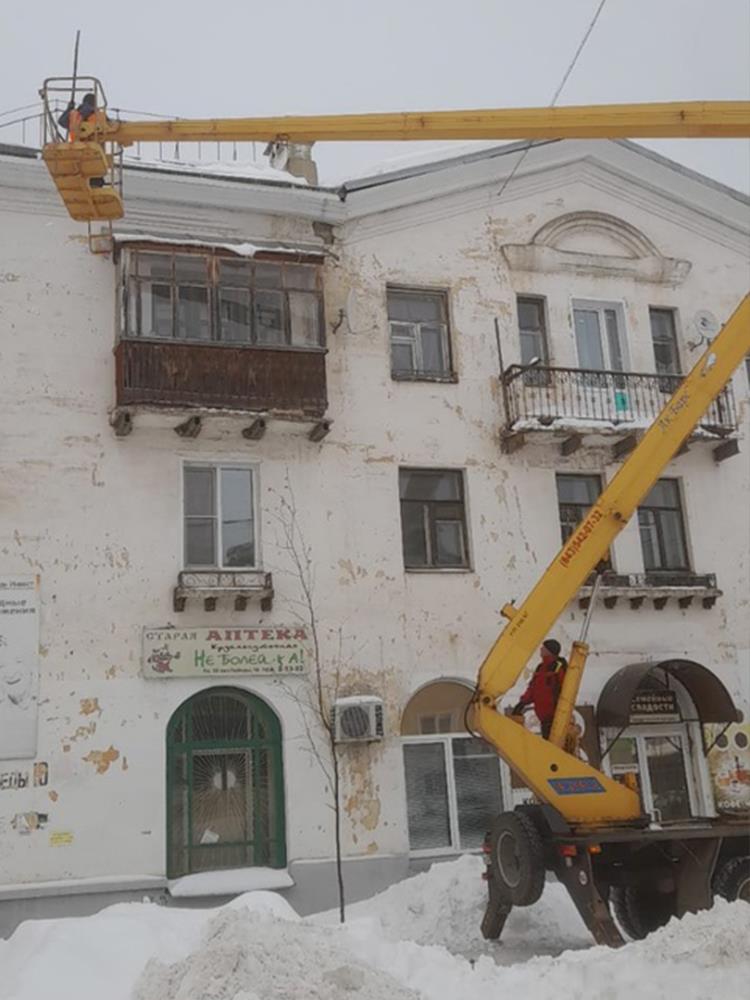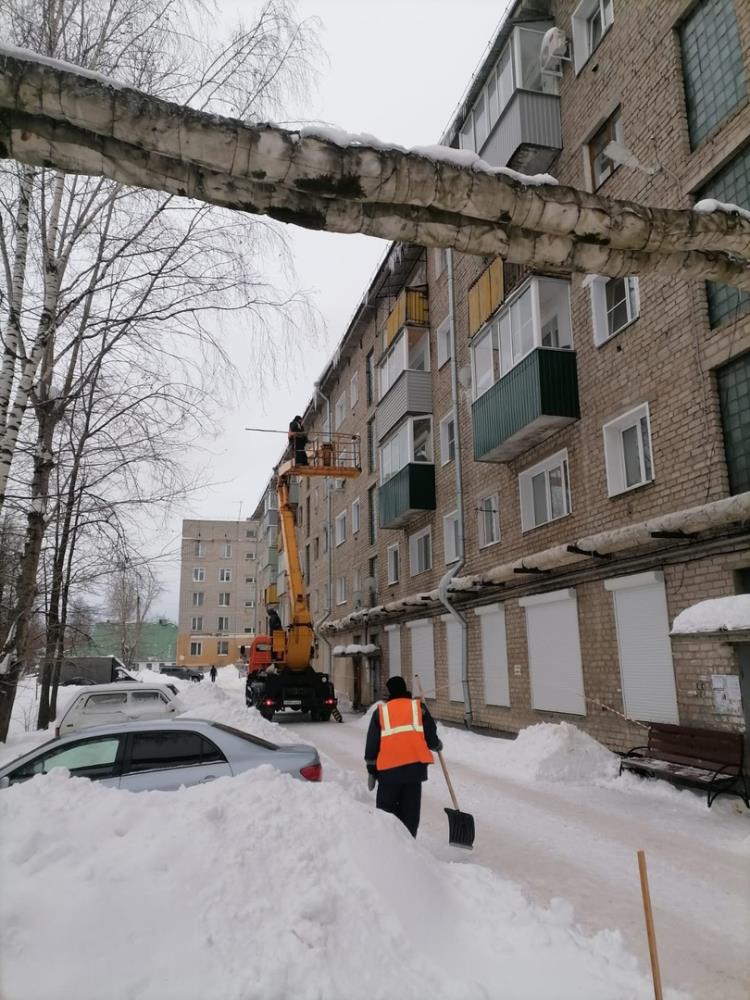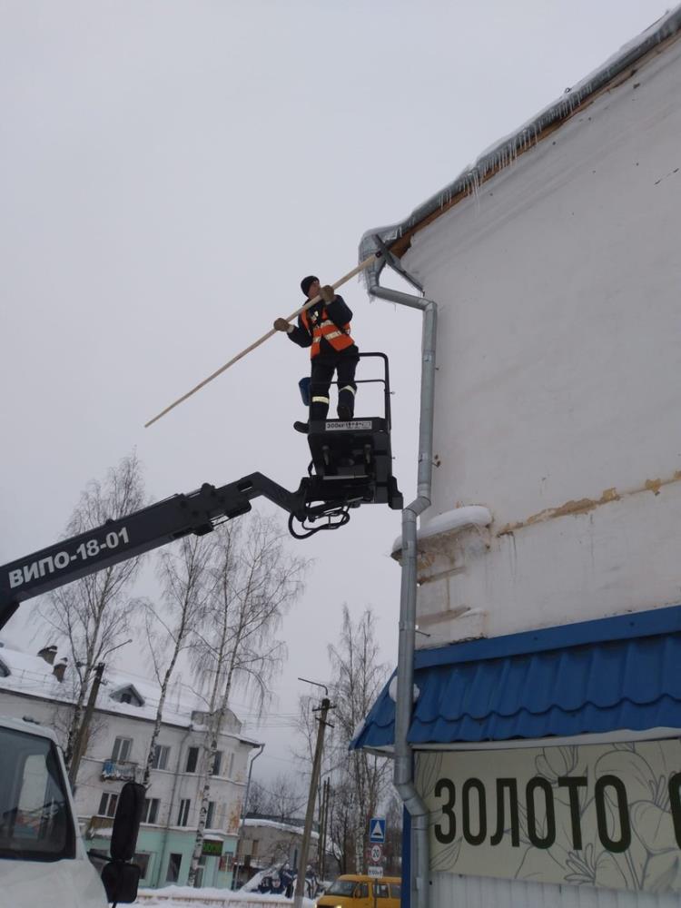 Сотрудники «Жилищных услуг» продолжают очищать от снега и сосулек кровли МКД.