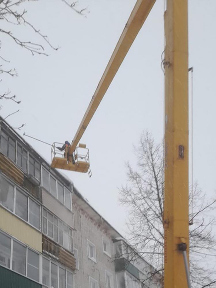 Сформированы графики объездов многоквартирных домов. Начальник производственного отдела организации Е.В. Хитрова и мастера ежедневно осматривают состояние кровель, принимают решения по их очистке. На объекты выезжают: три спецмашины, два трактора для уборки снега и три бригады высотников. За день они успевают до 19 кровель. За январь 2024 года в Омутнинске выполнена очистка 380 кровель. Такое количество получается из-за повторной чистки некоторых кровель МКД.