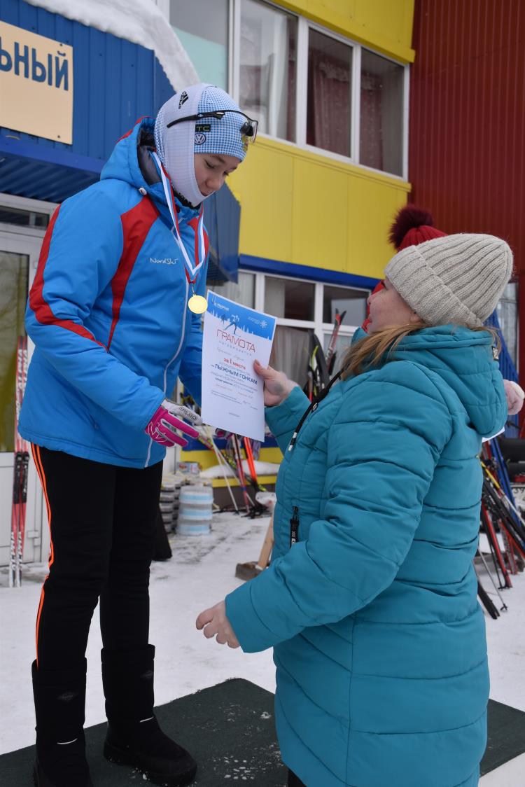 Подарки вручили самому юному и самому опытному лыжникам - Дарье Филимоновой и Сергею Кононову.