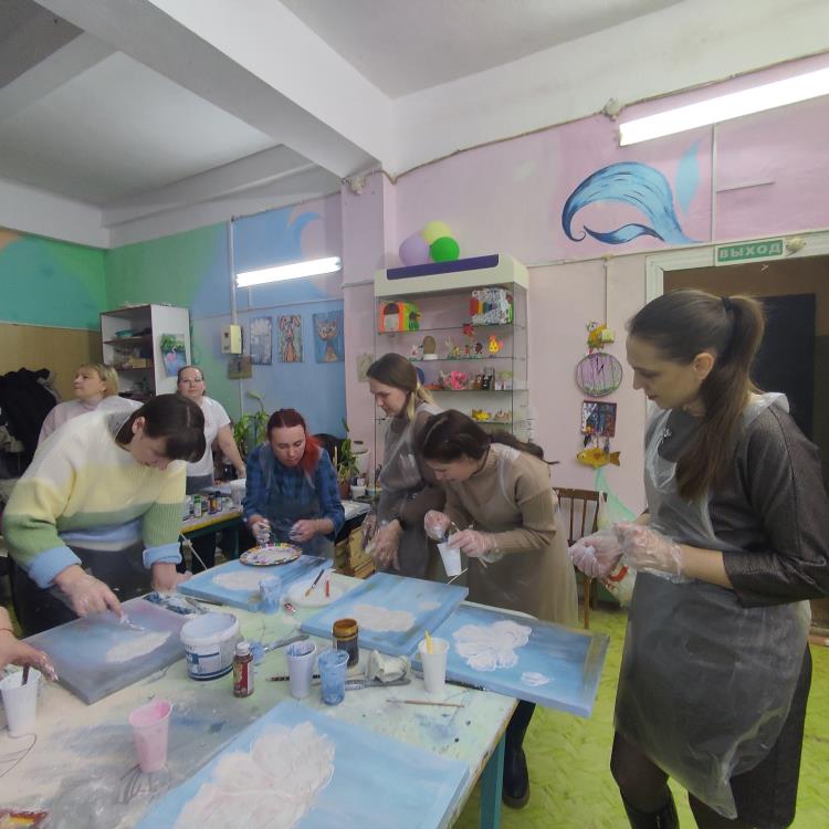 Искусством создания интерьерных панно на холсте с участницами поделилась педагог художественного отделения детской школы искусств Елена Чадаева.