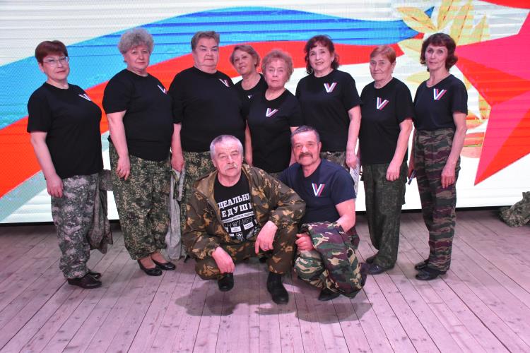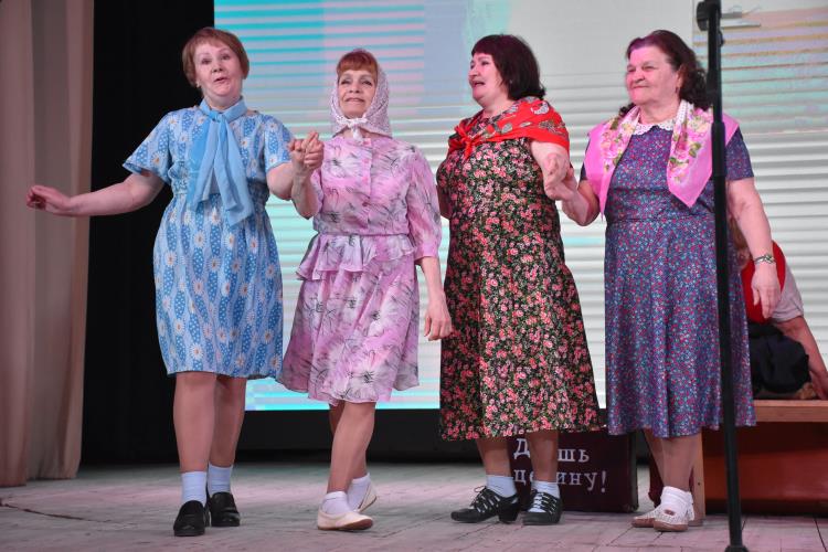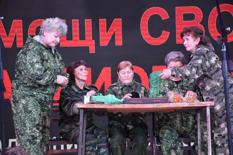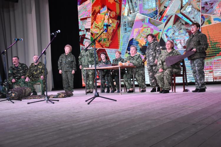 Со слезами на глазах зал смотрел театрализованную постановку «Героев поддержать и победу приближать» о деятельности активистов группы поддержки СВО «Патриоты». Номер подготовили ветераны Песковки.