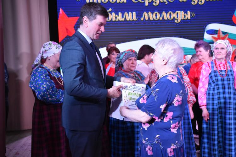 Конкурсную программу песней «Я внук того солдата» открыли ветераны Омутнинского металлургического завода, которые также рассказали о помощи бойцам СВО.