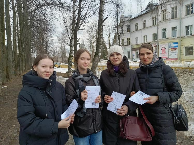Молодые люди раздавали флаеры с информацией о голосовании.