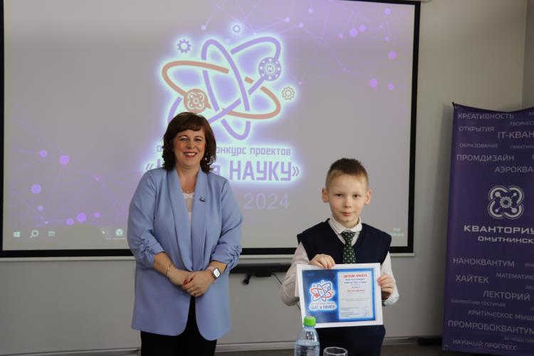 1 место - Максим Наговицын и Александра Гроица, с проектом «Определение содержания железа в буром железняке», детский технопарк Кванториум в г. Омутнинске, руководитель Екатерина Козлова.
