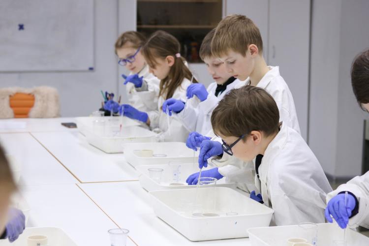 Знакомство гостей с технопарком началось с наноквантума. Это место, где ребята изучают свойства материалов, химические формулы, проводят эксперименты и опыты.