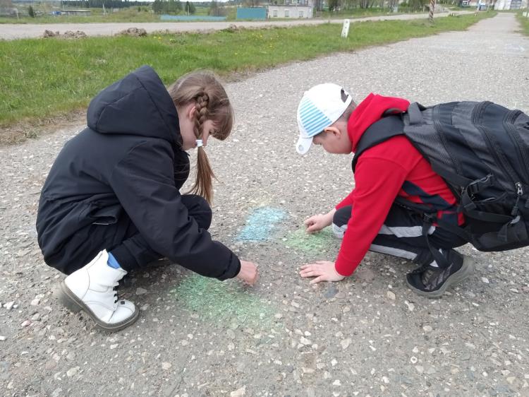 Красивым финалом праздника стал общий рисунок на асфальте — солнце, символизирующее теплые отношения и крепкую дружбу.